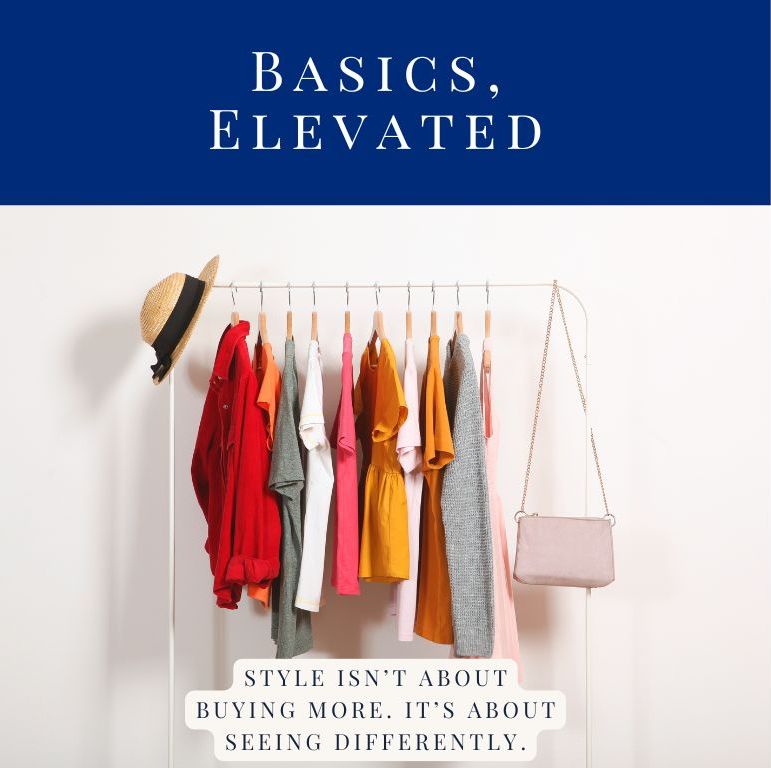 Basics, Elevated teaches you how to turn wardrobe staples into intentional, stylish outfits without replacing your closet. Learn why your basics may feel flat, how to elevate them with proportion, texture, styling, and third-piece strategy, and how to refine what’s no longer serving your style.